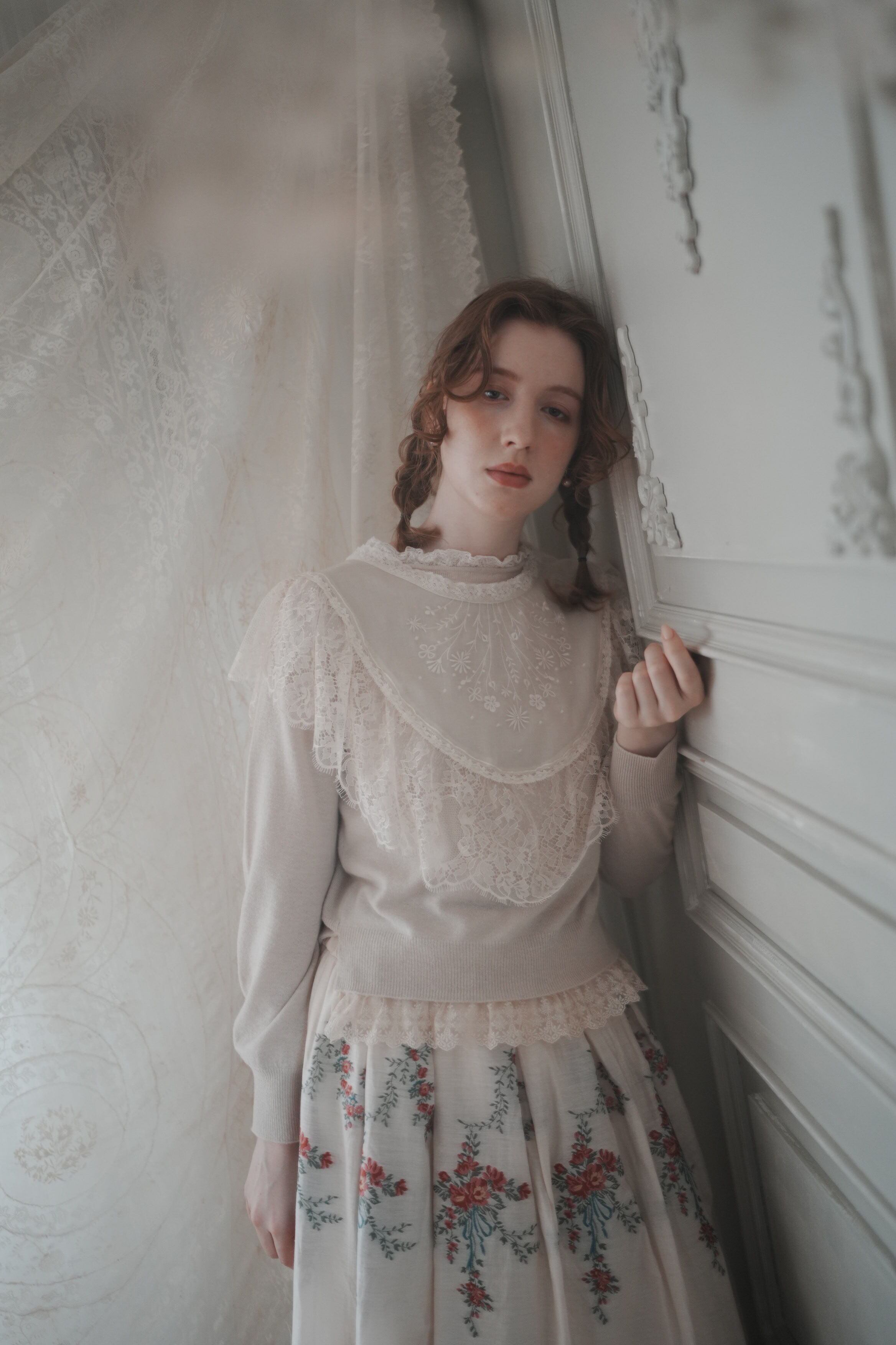 【花刺繍のケープカラー】