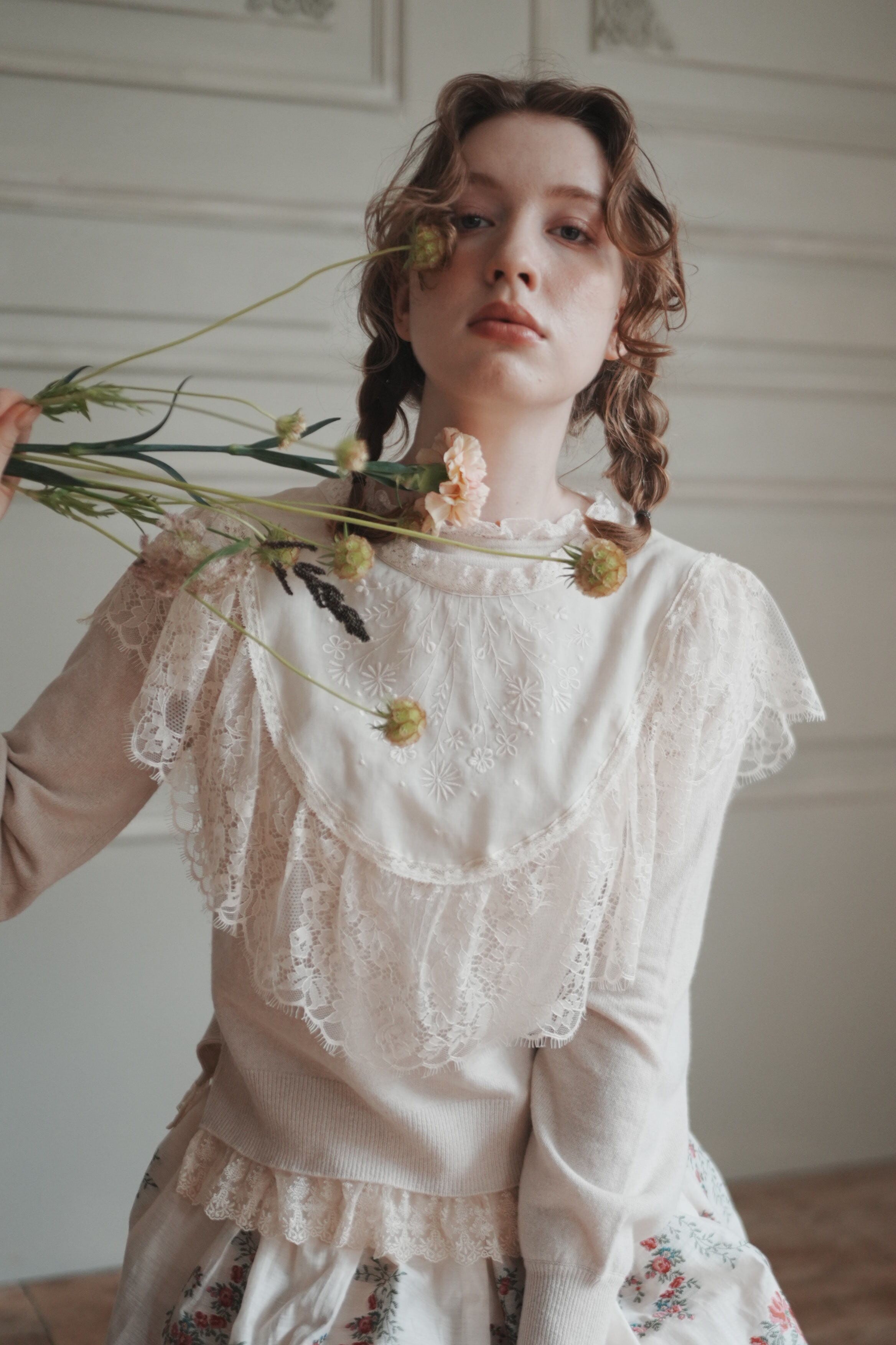 ⭐︎ 花刺繍が施されたケープカラーのアイテム。軽やかなコットン素材は、通気性が良く、快適な着心地を提供します。クラシックなデザインは、さまざまなスタイルにマッチし、特別なシーンやデイリーユースにぴったりです。